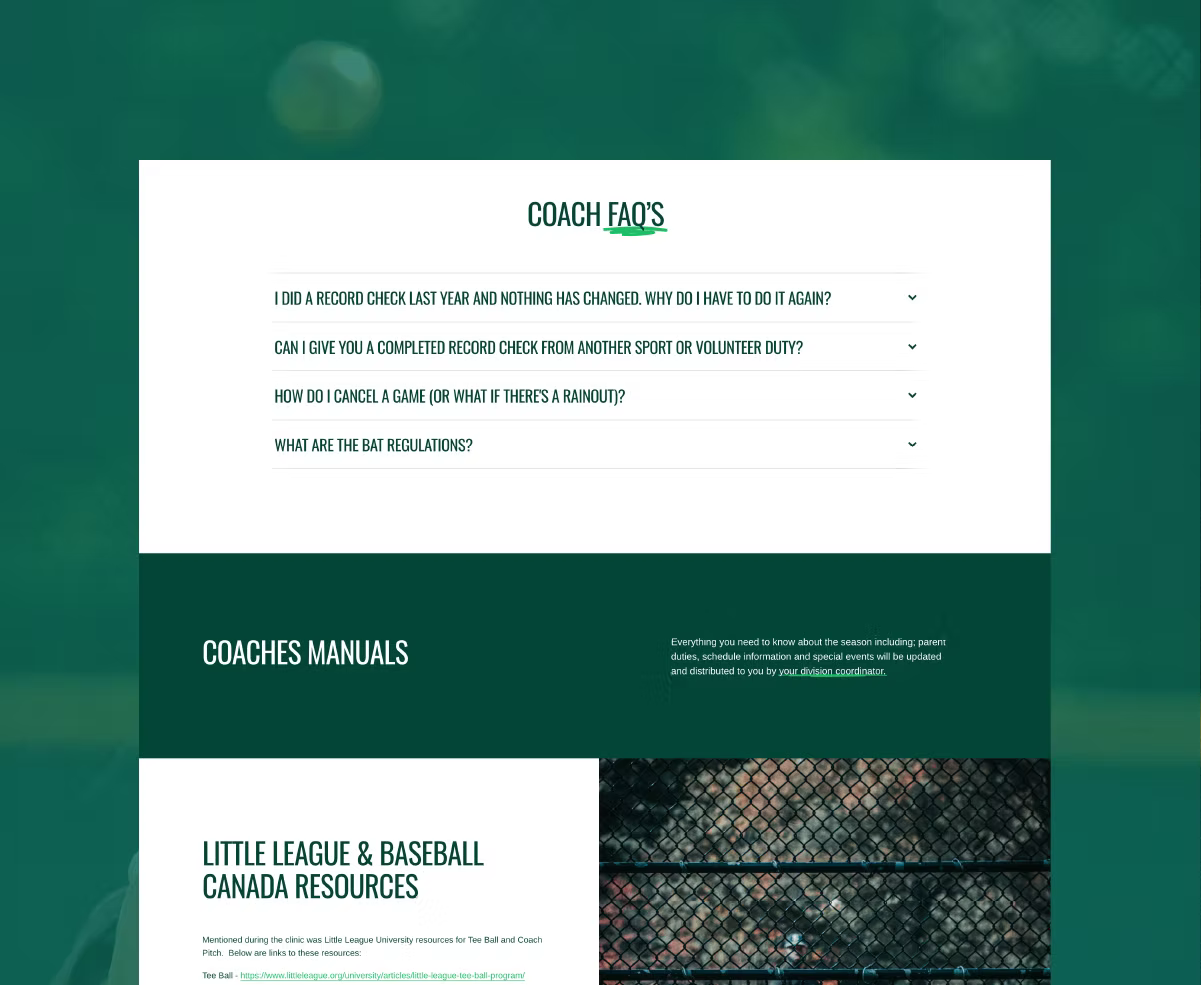 THE CLIENTCoquitlam Little League is a well-established baseball club with a strong community presence and over 70 years of history. Their current site was somewhat challenging for parent volunteers to update and needed a refresh to reflect their values, history, and commitment to players and families.